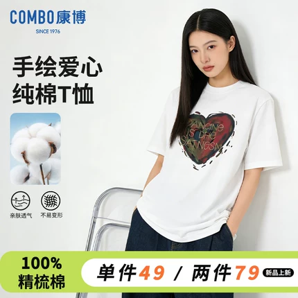 波司登 Combo 康博 男女同款2026夏季新款印花舒适纯棉短袖T恤 39包邮
