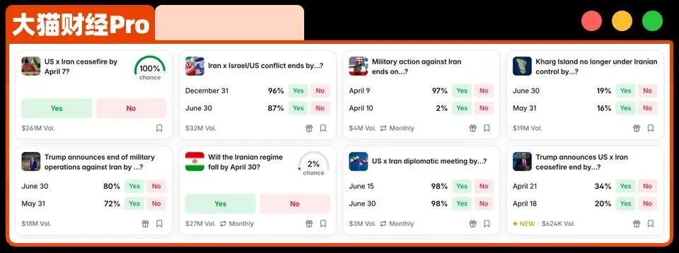 有一个盘口很热门,美国和伊朗的停火日期,现在,已经结束了,答案是4月7日。