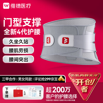 全新4代门型支撑护腰带,械字号产品,双向四重加压,修复腰椎,矫正身姿。目前这款护腰带京东商城维德医疗旗舰店售价¥128,下单7.7折,叠加¥100-30优惠券,折后实付¥68.56包邮,能舒缓腰部压力,缓解腰肌劳损。