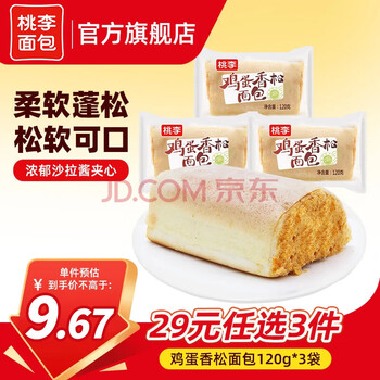 鸡蛋香松包,香松饱满,健康营养。目前360g天猫商城桃李食品旗舰店特价¥12.9,满1件7.5折,可领取满28减8元券,下单3件,实付¥21.02元包邮,折7元/件好价,同页面还有多种口味可选!
