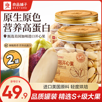 精选美国加州S级大果(21-25颗/盎司),颗粒饱满,自然本色,原香口感 。目前京东商城良品铺子京东自营旗舰店255g*2罐装售价¥49.9,领取10元优惠券,实付39.9元包邮,到手超过1斤。