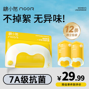 创新3D仿生花瓣触感面料,绒感绵柔,EO灭菌,7A级抑菌,免洗直接穿,非常适合旅游出差,每条不到¥1.5。目前12条装京东商城棉小然内衣旗舰店售价¥34.08,领取5折优惠券,券后实付¥17.04包邮,折合¥1.42/条,独立包装好方便,用完一次就抛。