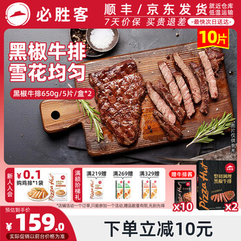 必胜优选 整切调理黑椒牛排黑金礼盒 130g*5片*2盒129元包邮