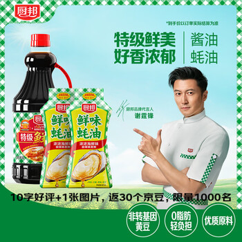特级鲜美,好香浓郁。目前京东商城厨邦官方旗舰店特价29.9元,叠加10元优惠券,实付19.9元包邮,鲜味蚝油挤挤瓶 605g*2瓶+特级鲜生抽1.48kg 。