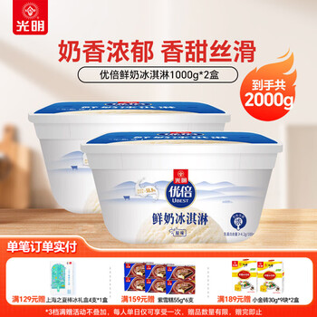 Bright 光明 优倍 鲜奶冰淇淋 家庭装1kg*2桶新低49元包邮(24.5元/桶)