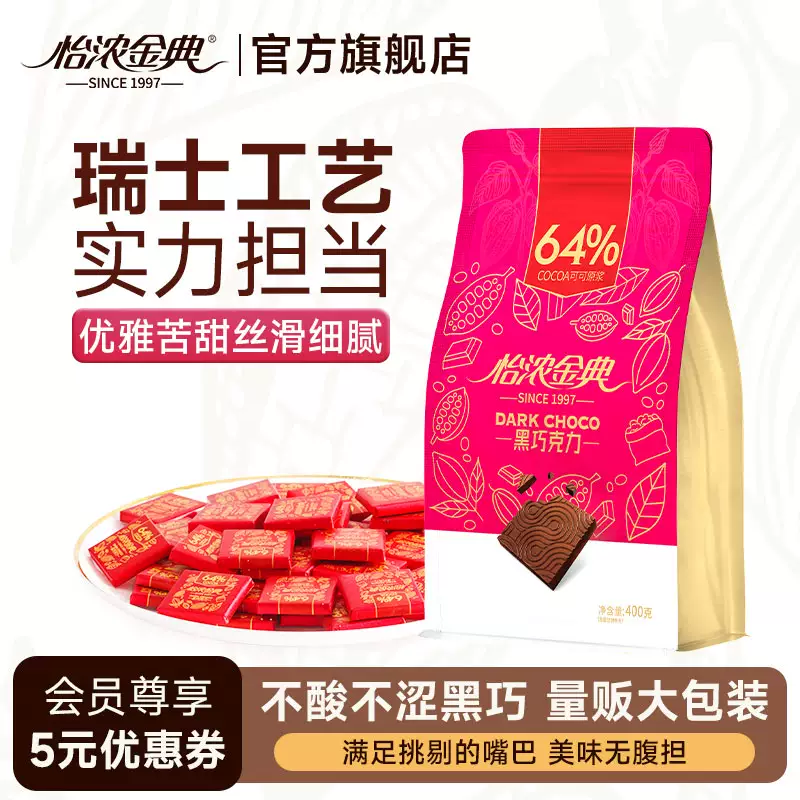 28¥ HU591 iQAG5T4Vpmd¥ https://m.tb.cn/h.iKgHtQQ 怡浓金典64%黑巧克力纯可可脂烘焙散装网红休闲零食送女友礼物