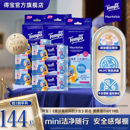 Tempo 得宝 戴珍珠耳环的少女联名卫生湿巾 8片*18包19.9元包邮