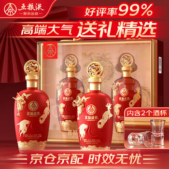 京东自营,五粮液股份 喜福盛世 龙行大运 52度浓香型白酒500mL*2瓶礼盒装史低179.9元包邮