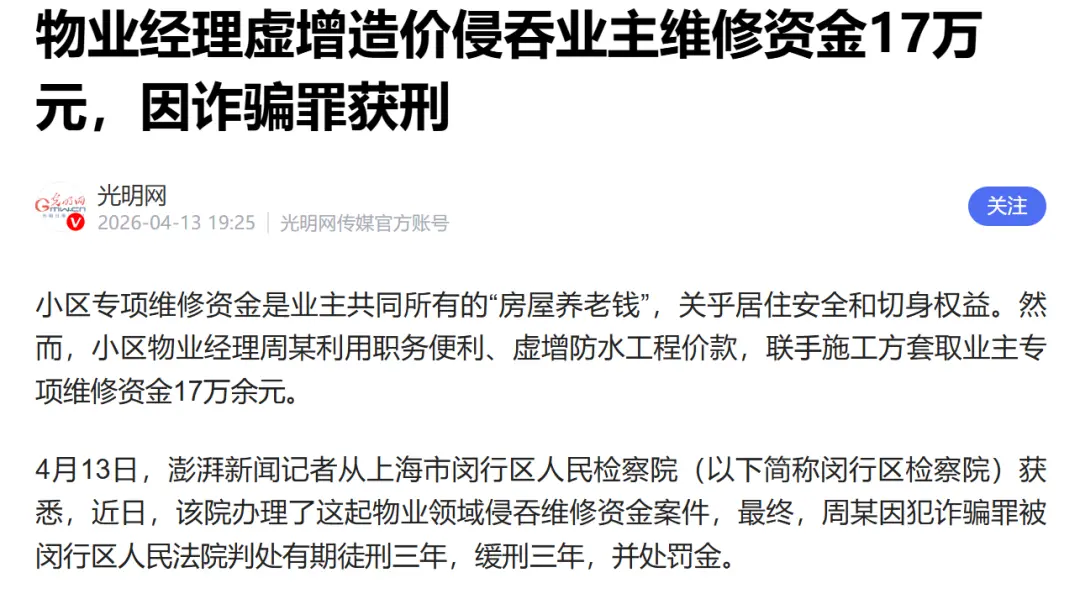 胆子大一点的,直接开始乱收水电费,要么和施工队合伙骗取专项维修资金。