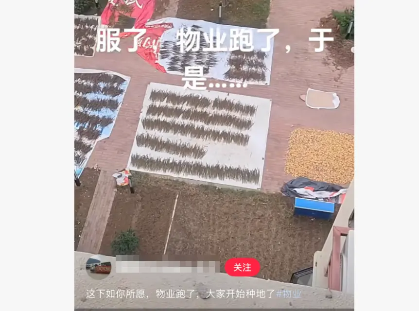 小区里那些爱搞事、爱作妖的人,失去了物业的威慑,也开始彻底放飞自我,直接挖了小区的花坛开始种地,还在把收成堆在花园里,体验真正的都市田园生活。