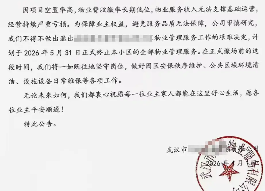 但是自2024年起,中国物业管理市场出现了一个非常反常的现象,当初宁可动用暴力也要保住地盘的物业企业们,开始大规模主动放弃自己的在管项目。2025年一年,仅网上公示的物业撤场项目,就多达173个,其中65%左右属于物业主动解约撤出,或者合约到期后不再续约,并不是遭到小区业主解聘。按照中指研究院的数据,2024年至2025年间,中国排名前50的品牌物业,主动撤场率同比上升37%,其中六成都是住宅。