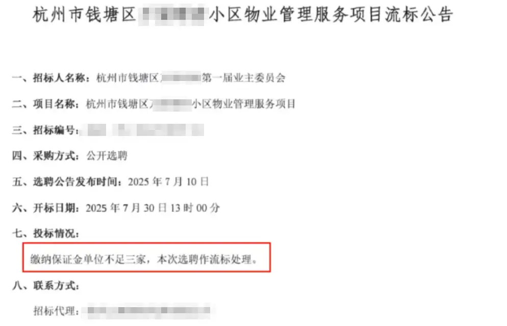 与此同时,大量小区在选聘新物业的时候遇冷,普遍出现流标、弃标的情况,说得难听点就是,新的物业公司也不想接盘。甚至有极端案例,物业公司宁愿放弃十多万的保证金,也要弃标。