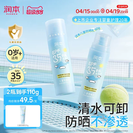 夏季出游必备!专研精简配方,SPF20PA++防晒指数,6.25H防晒红晒伤,0刺激,轻薄不粘腻,清水就能卸除。目前天猫商城润本旗舰店售价¥64.9,官方立减¥15,叠加¥30优惠券,新低19.9元包邮