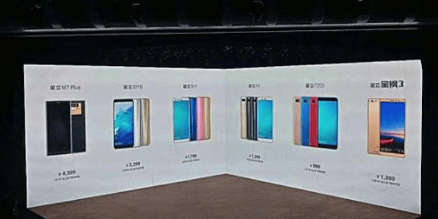2017 年,金立一口气发了 8 款全面屏手机。