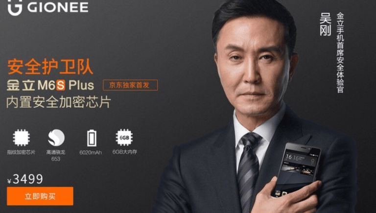 2017 年,金立针对政商人群推出了 M 系列,还特地找了 “ 达康书记 ” 吴刚来代言,主推自己安全、加密属性。