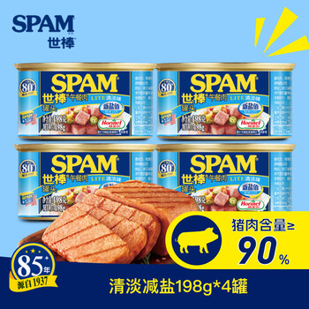 SPAM 世棒 午餐肉罐头 减盐清淡口味 198g*4罐 史低35.8元包邮(折8.95元/罐)