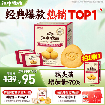 比2月低价小降3元,升级款猴头菇增加量>70%!目前京东售价99元,领满99元减40元优惠券,PLUS实付54.05元包邮 ,再送2盒饼干48g+礼袋!