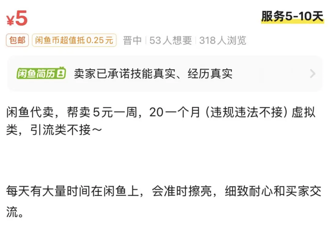 二手电商也玩过这一套,但胜在光明磊落。有人用闲鱼提供的免费自然流量白手起家,向流量不够用的职业卖家明码标价出租广告位,具体操作就是在自己的主页帮人挂商品链接。