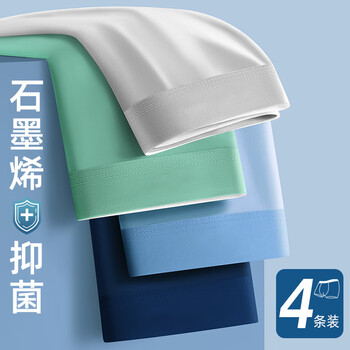 宜而爽 男士石墨烯7A抑菌冰丝无痕平角内裤 4条装19.9元包邮