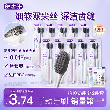 日用消耗刚需品,线下超市都很少见低于10块的牙刷了,囤货好价!目前6+2支装天猫商城舒客官方旗舰店售价¥39.9,领取¥39-20优惠券,19元包邮