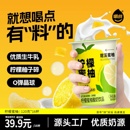 源头工厂优质奶源,100%优质生牛乳+柠檬柚子碎,琯溪蜜柚晶球Q弹爆脆,酸奶奶香浓郁。目前120g*16杯天猫商城嚼绊旗舰店售价¥69.9,超级立减¥30,领取¥10优惠券,29.9元包邮