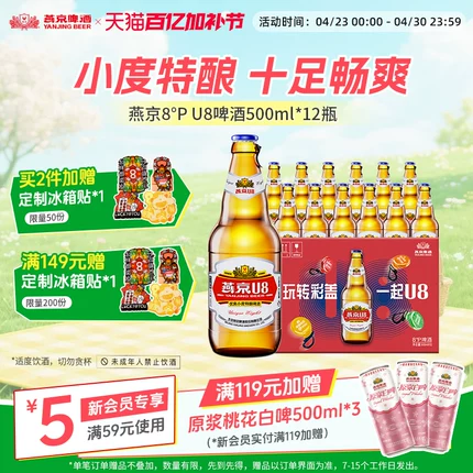 玻璃瓶款,醇香酒气,清新劲爽,小度酒,大滋味。目前500mL*12瓶天猫商城燕京啤酒官方旗舰店售价¥85,官方立减12%,领取¥12优惠券,62元包邮