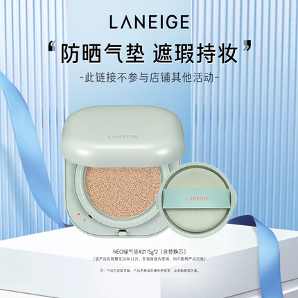 遮瑕效果棒棒哒!推荐!目前天猫商城兰芝官方旗舰店售价¥345,叠加使用¥246优惠券,99元包邮。一壳二芯,绿气垫持妆遮瑕,适合油性、混油皮人群使用,粉气垫轻薄水润,适合干性、混干皮人群使用。
