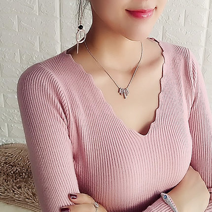 【伊彩漫莎 弹力长袖波浪花边V领打底衫 19元包邮(49-30券)】