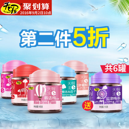 天喔 蜜饯组合 5罐 685克,中国驰名商标;精选优质原果,好品质。天猫聚划算报价39.9元,使用5元券,实付34.9元包邮,月销量11000件。
