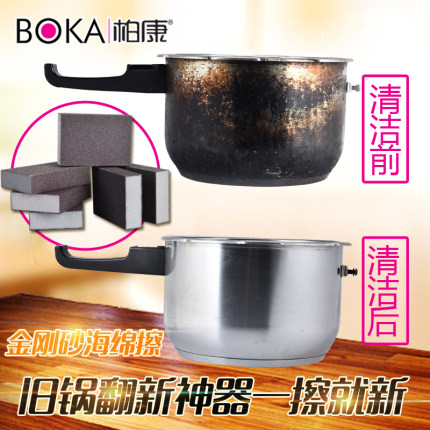 厨房清洁刷,加厚金刚砂海棉,帮您扫除各种顽固污渍焦迹。轻松去除顽固污渍,从此让你的厨具焕然一新。金刚砂不会掉砂,能除锅底焦粑,生锈、木砧等。粗颗粒适合去除比较厚,比较顽固的污垢,细颗粒适合去除薄的污垢,日常清洁必备品。