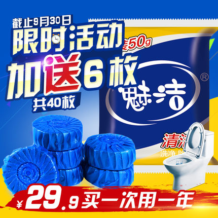 【魅洁 蓝泡泡除臭洁厕灵 34粒 14.9元包邮(29.9-15券)】