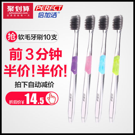 【前3分钟半价# 倍加洁 水晶质感竹炭牙刷 10支装 14.5元包邮(29-14.5)】