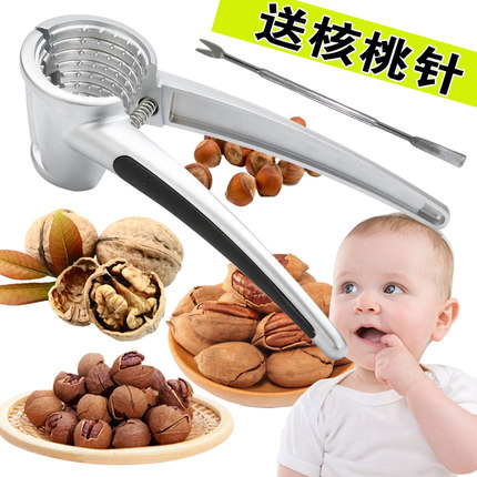 山核桃夹子 坚果钳子 核桃夹剥壳器,采用铝合金制成,手柄带有防滑设计,边缘经过处理,不刮手;弹簧伸缩性能强,使用寿命长,易拆方便清洗。
