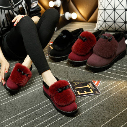 采用布鞋面,耐穿实用,保暖加绒内里,绒毛浓密厚实,保暖性强,穿着亲肤舒适,鞋面时尚兔毛搭配蝴蝶结装饰,既时尚潮流有型又有美观耐看。
