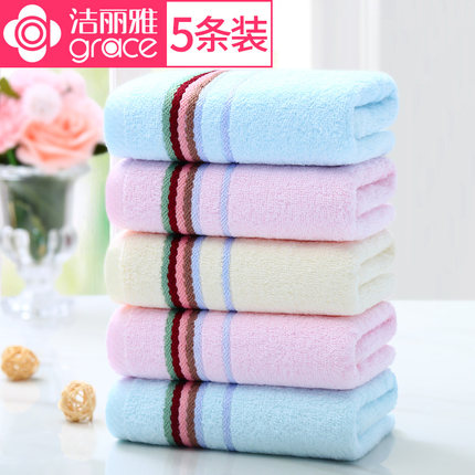 【洁丽雅纯棉毛巾 实惠5条装74*33cm 24元包邮(34-10)】
