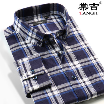 100%纯棉面料 冬季翻领, 长袖格子,弹性袖口设计,让温度保持更久,洗涤后不松垮,更有型。三款颜色可选,尺码38-45