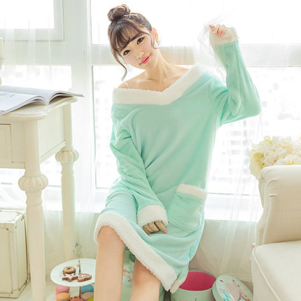 【网依丹子 女士秋冬款可爱V领法兰绒睡裙 29.8元包邮(49.8-20)】