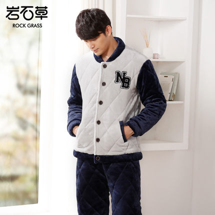 【【岩石草】男士三层加厚加绒法兰绒夹棉睡衣 券后69.9元包邮 送运费险】