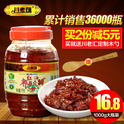 【四川特产 川老汇红油郫县豆瓣1000g卷后11.8元包邮送木勺】