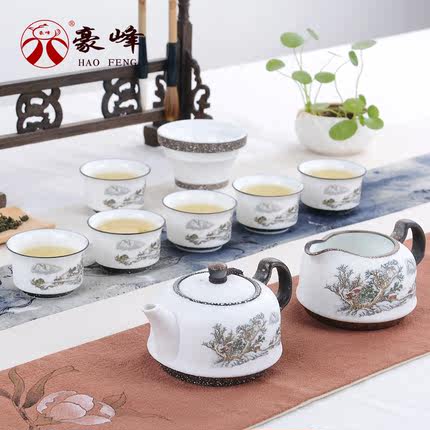豪峰10件套雪花釉功夫茶具套装,设计巧妙出水顺畅,运输破损免费补发,放心购物!