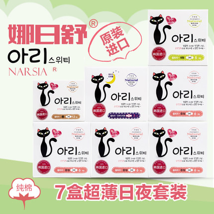 NARSIA/娜日舒 韩国进口无荧光剂卫生巾日夜用组合套装姨妈巾7盒,正品授权, 韩国进口 ,天然全棉 ,无甲醛 ,无荧光剂,天猫今日劵后39.9包邮,感兴趣的朋友可以去看看。