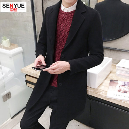 【凡戈冬装新款男风衣修身韩版毛呢大衣 劵后99包邮】