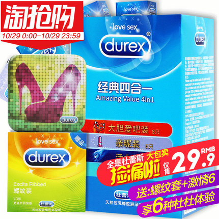 durex 杜蕾斯 经典4合1 + 组合装 + 铁盒 共32只 24.9元包邮(需领券)