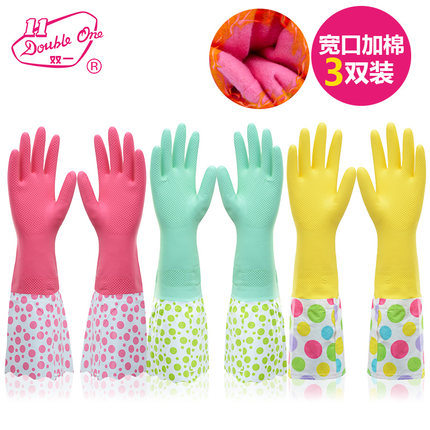 【双一 长款加棉防滑耐磨家务手套 3双 16.9元包邮(19.9-3券)】