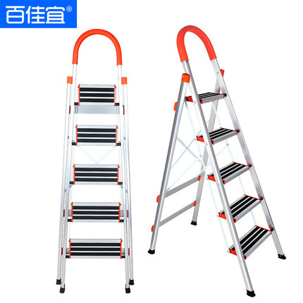 【76元起包邮(106-30)百佳宜 家用折叠铝合金人字梯(三步至六步款)】