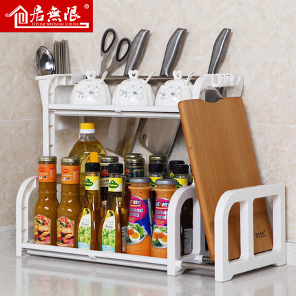 【居无限 厨房调味料双层置物架 送挂钩4个 16.9元包邮(19.9-3券)】