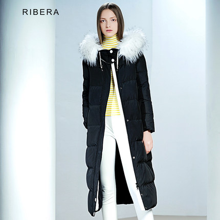 RIBERA/利贝拉 2016冬季新款 大毛领加厚连帽纯色羽绒服,报价599元,使用150元优惠券,只要449元包邮,2色可选,尺码较全。这款羽绒服填充80%白鸭绒,过膝高端款,厚实保暖;采用双头拉链设计,自由可拆卸毛领,活动自如;几何美学实用主义,温暖有型
