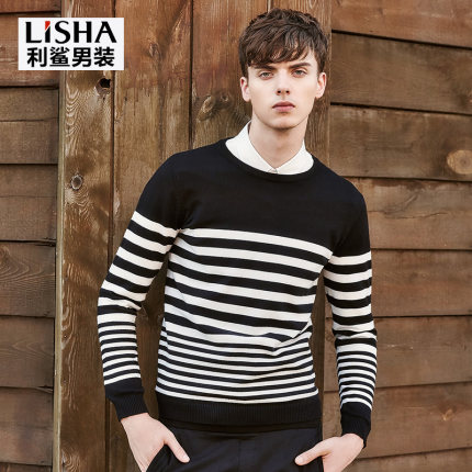 利鲨 文艺范条纹时尚英伦简约针织毛衣,冬季必备,透气,有型,防皱,百搭条纹针织毛衣。