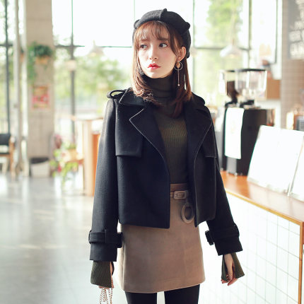 安都 毛呢短外套,经典版型,小个女生最爱,独家磁性暗扣,百搭随意,经典黑白两色可以选择。