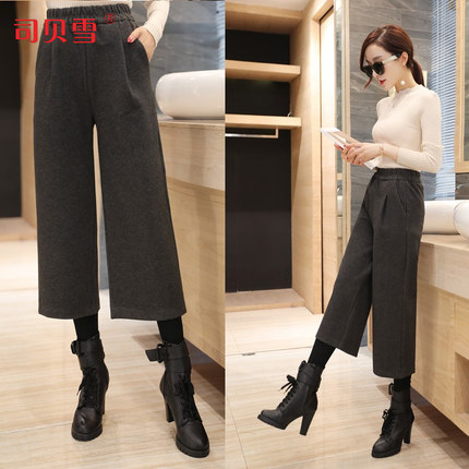 司贝雪 秋冬新款女士毛呢阔腿裤,上身效果好 ,藏肉神器显瘦 ,松紧高腰 ,百搭时尚。